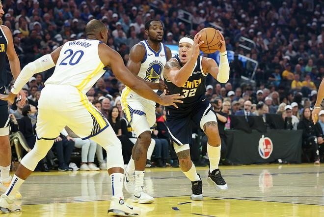 首秀库明加拿下17分9篮板6助攻,本场强强对话也有14分5篮板3助攻入账,并且出现在勇士队决胜阵容之中。